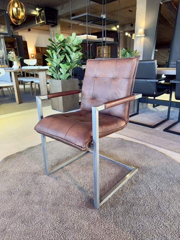 Freischwinger Stuhl aus Büffelleder mit Armlehnen | Modell BADSAAL SHANGHAI